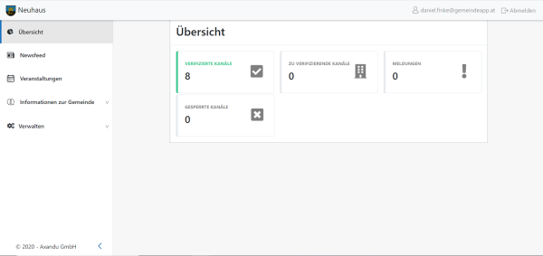 Nach dem Einloggen befinden Sie sich auf der Übersichtsseite: